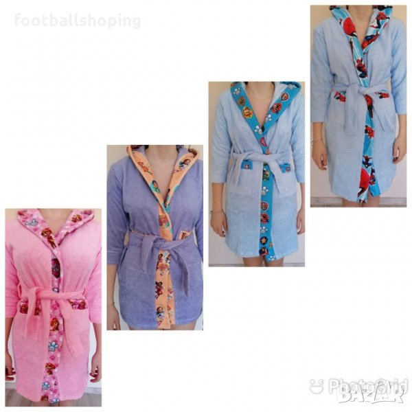 Предлагам страхотни хавлиени детски халати от 2 до 14год.Супер качество на изработка.При поръчка може да се изработи и халат с анимация по Ваше желание.Снимките са на 4 вида халати - 2 за момче и 2 за момиче.Моля разгледайте и другите обяви в профила ми :)