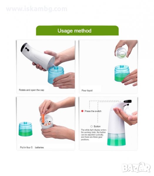 Автоматичен дозатор за сапун, подходящ за различни течности като течен сапун, шампоан, душ гел или дезинфектант! Идеалното безконтактно решение да измиете ръцете си!