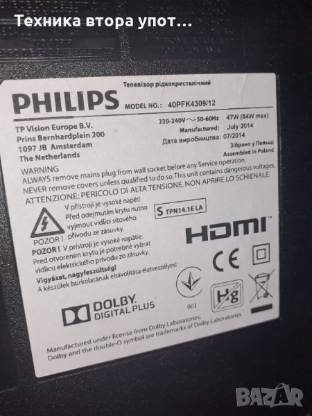 ТВ LED Philips 40 инча с сателитен тунер → Обява 34091362