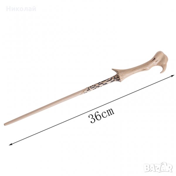 Slytherin и Gryffindor. Дължината на пръчката е 36 см. изработена е от