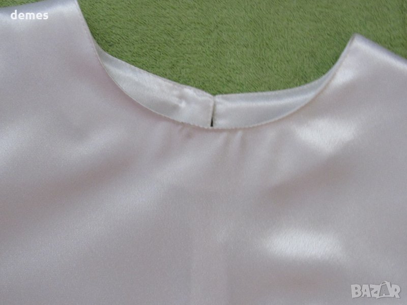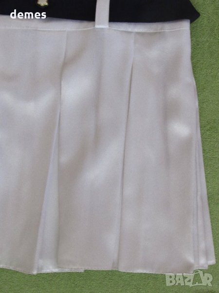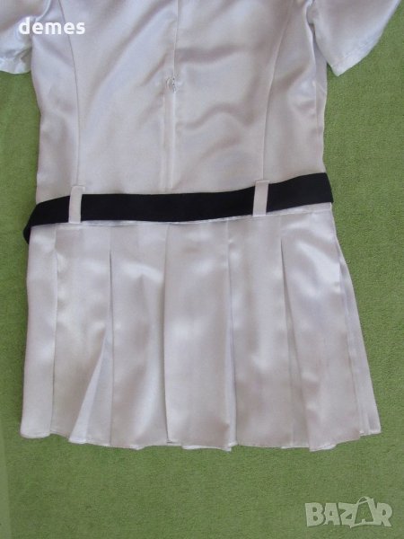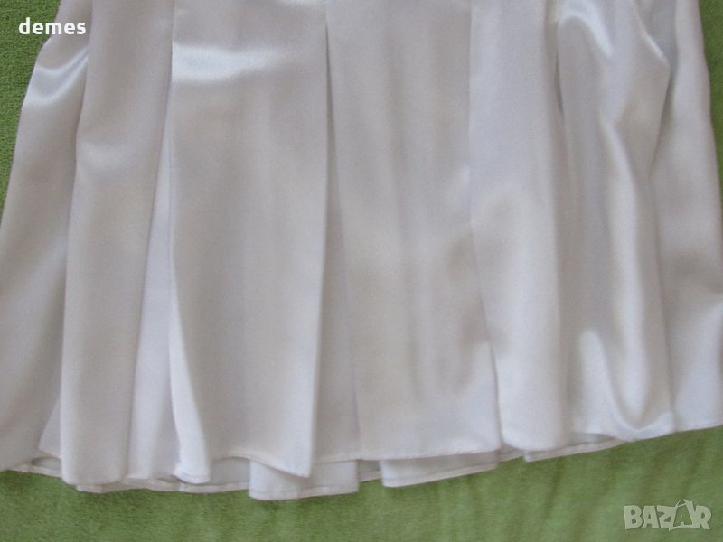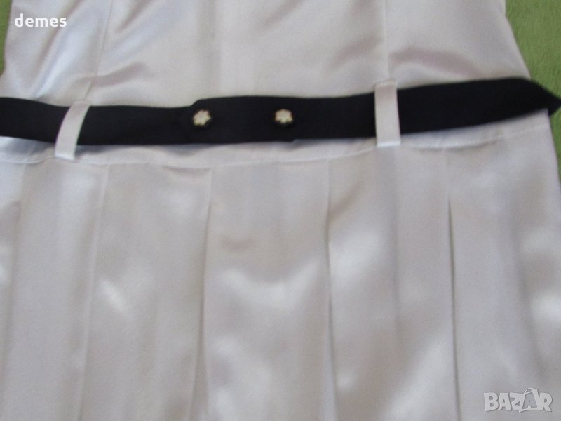 Много красива и удобна рокля с удължена талия-снежно бял сатен със син колан.
