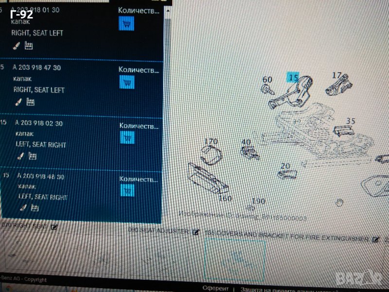 A2039180230 7101**NEU**MERCEDES-BENZ**W203**W463** Капак на седалка Пътническа **