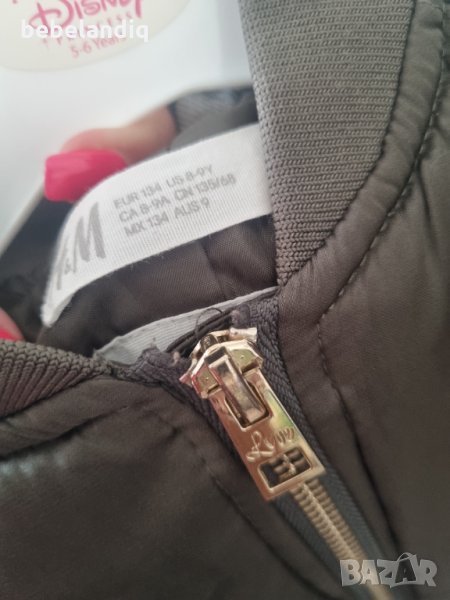На последните три снимки - сатенирано яке тип Бомбър, HM, идеално за хладните сутрини и вечери в момента. Цвят милитъри. Цена 10 лв.