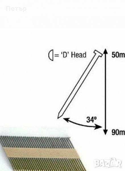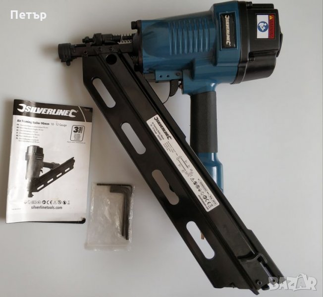 Пистолет такер пневматичен за дърво с пирони на 34° от 50-90мм → Обява 34099695