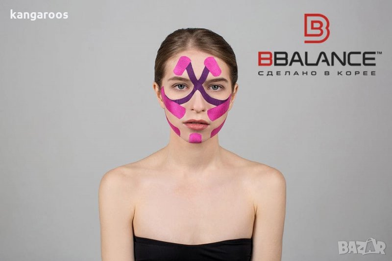 BB FACE TAPE ™ лифтинг лента за лице се използва в естетичната козметология за оформяне на овала на лицето, изглаждане на възрастовите и изразителни бръчки, възстановяване на еластичността на кожата, подобряване на микроциркулацията и кръвоснабдяването на тъканите на лицето. Принципът на действие на BB FACE TAPE ™ се основава на отпускане на лицевите мускули, участващи в изражението на лицето, чийто спазъм води до образуване на гънки и бръчки. Но, за разлика от ботокса (инжекции с ботулинов токсин), лентите не парализират мускулите, което води до нарушено кръвообращение и образуване на оток, но възстановява тонуса и фиксира мускулите в отпуснато състояние, увеличавайки интерстициалното пространство, подобрявайки кръвоснабдяването и насърчаване на елиминирането на излишната течност. Правилно нанесената лента за лице BB FACE TAPE ™ активно стимулира кожните рецептори, има благоприятен ефект върху структурите на подкожната тъкан, създавайки условия за нормализиране на физиологичните процеси в увредените тъкани и възстановяване на мускулния тонус. След завършване на курса на залепване на лицето (14-21 дни) се формира мускулна памет, лицето свиква с отпуснатото състояние и новото положение на мускулите.