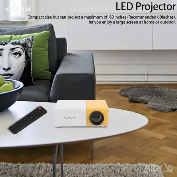 Мини проектор 1080p,съвместим със смартфон/ таблет/ лаптоп/ PS3/ PS4/ TV Stick
