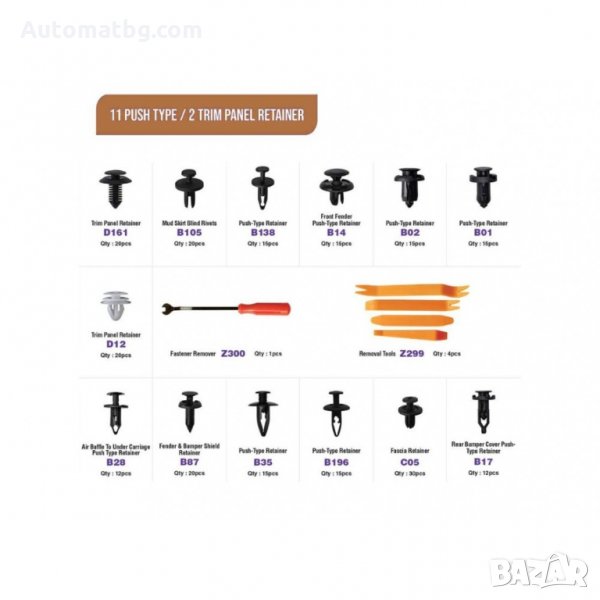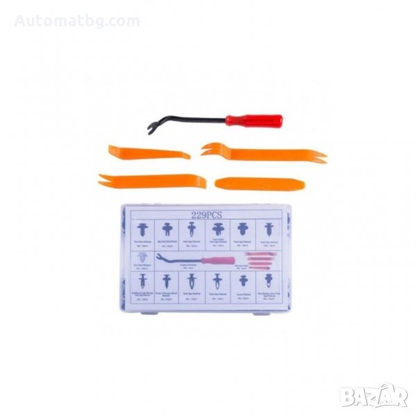 Комплект пластмасови скоби за кола с 229 части, 4 инструмента за отстраняване.