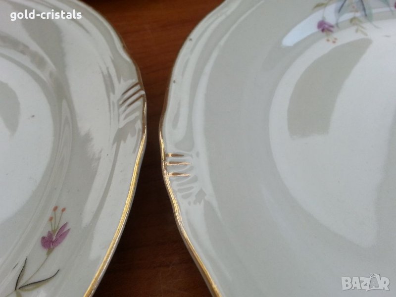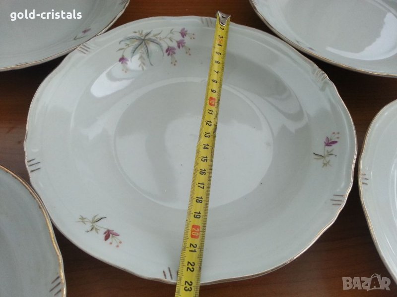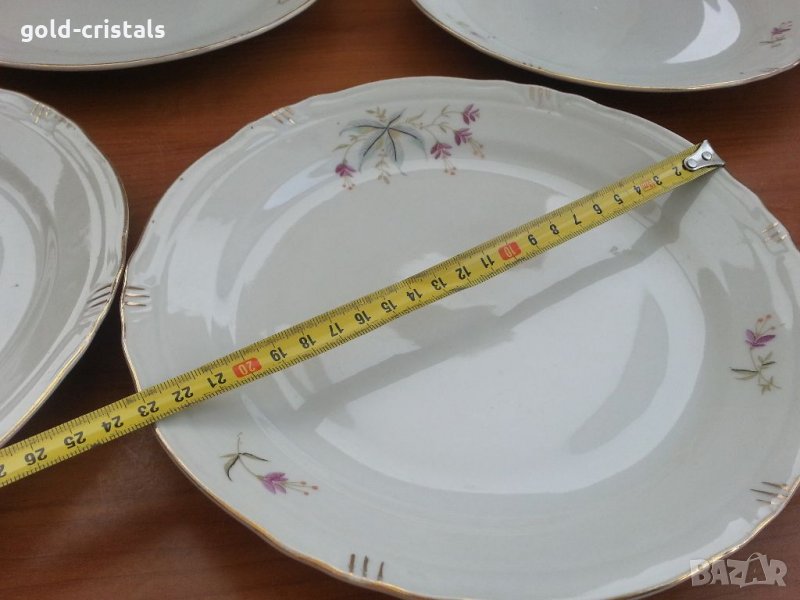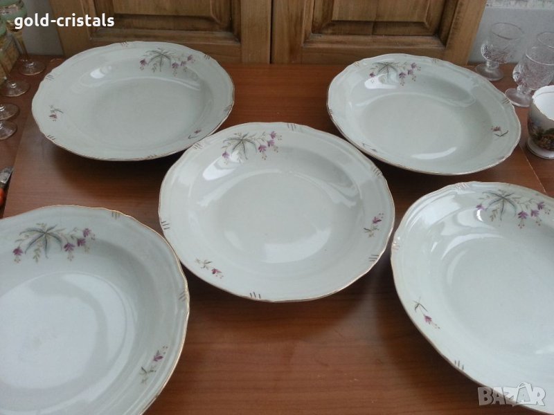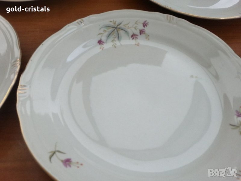 Стар български порцелан чинии плитки 4бр -14€ има и дълбоки 5бр -15€ една дълбока има пукнато с златен кант на места протрит без чукнато за всички чинии общо цена 65лв маркирани сип сервиз комплект сет лот ретро арт декор винтидж колекция стари има и супник- 50лв