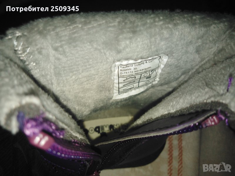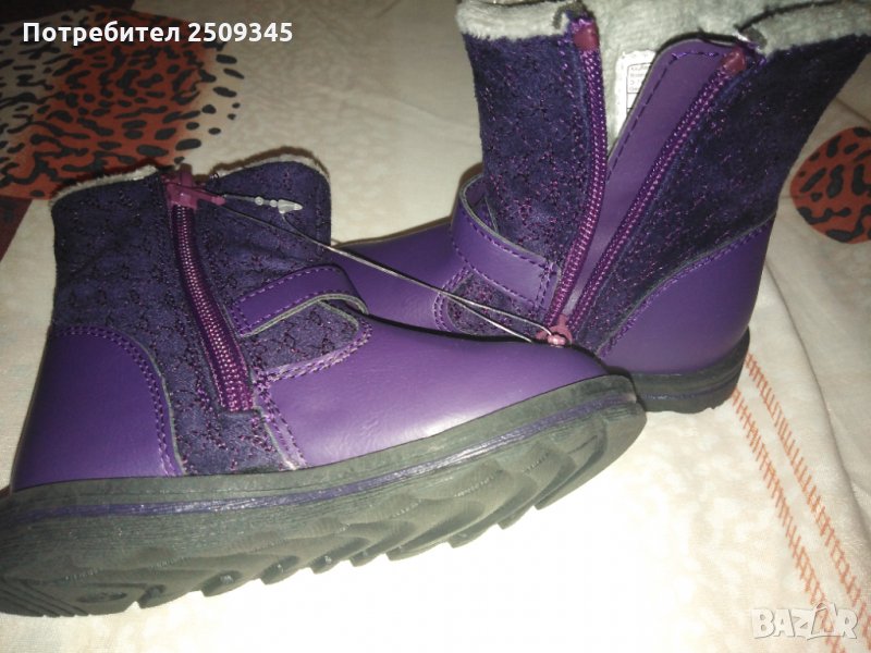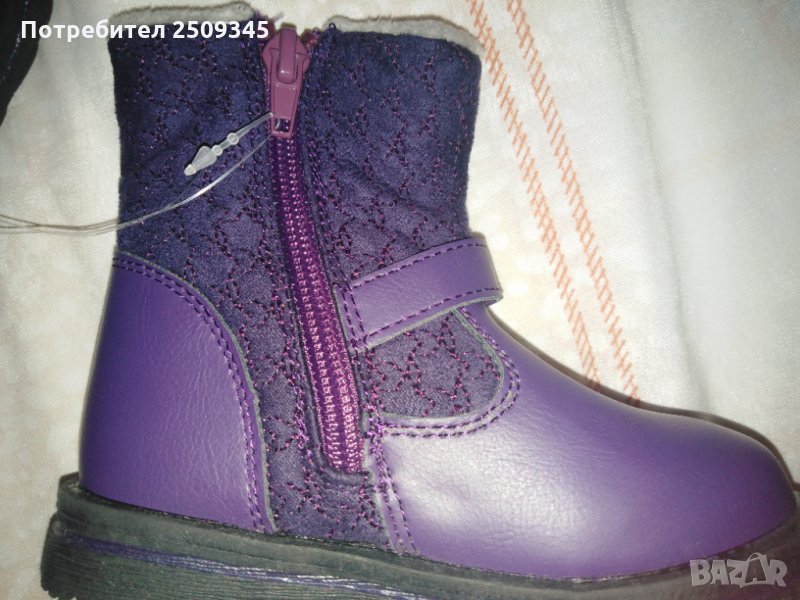 Детски ботушки 22 номер, с лек пух отвътре, лилави от кожа и плат, подметка та е с грайфер да не се хлъзга, с цип, лесни за общуване, НОВИ!!!