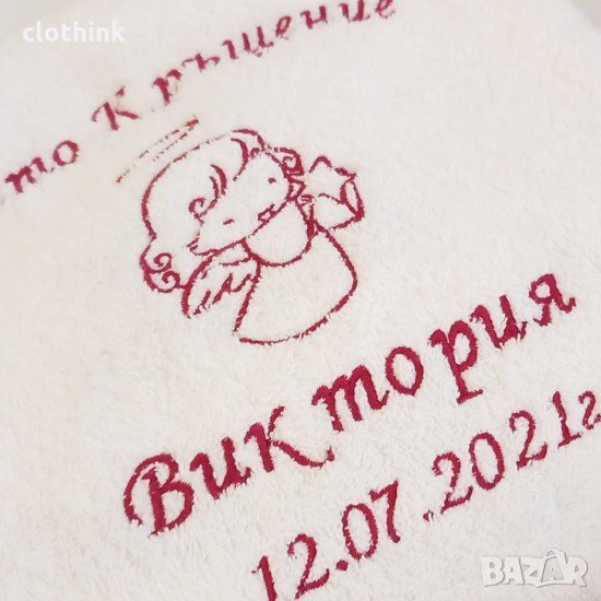 Хавлия - кърпа за кръщене, изработена от фина памучна материя и бродерия с елегантен дизайн до най-малкият детайл.