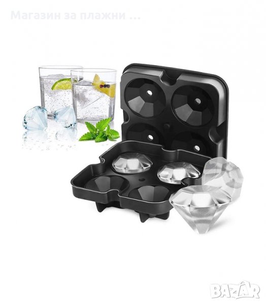 Ефектна форма за лед, от която се получават шест замръзнали диаманта наведнъж. Форма за ледени диаманти с четири места за наливане на вода. Може да се използва за замразяване на шоколад, желатин и цветни течности – ако сте прецизни и обичате експериментите, налейте различен цвят течност във всяка вдлъбнатина на формата и ще получите 4 разноцветни диаманта.