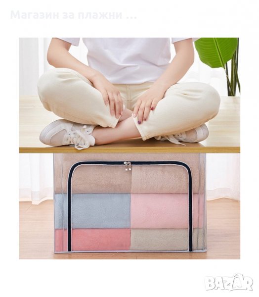 Калъф за съхранение на чаршафи, дрехи или други вещи в гардероба или под леглото. Органайзера е идеален както за съхранение на дрехи извън сезона им, така и за пренасянето им по време на ваканции и др.