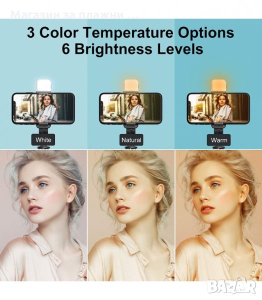 Сгъваем и компактен дизайн, лесно преносим в дамска чанта. Универсална стойка за закрепване на телефона, подходяща за всякакви размери мобилни устройства. Две LED светлини за подобряване качеството на изображението, постигане на ефекти като сияйна кожа, елиминиране на шум. Сгъваем трипод, който ви позволява да използвате селфи стика като статив. Лесен за разглобяване и сглобяване дизайн, за постигане на пълна функционалност.
