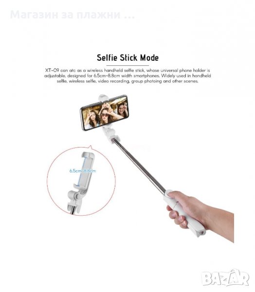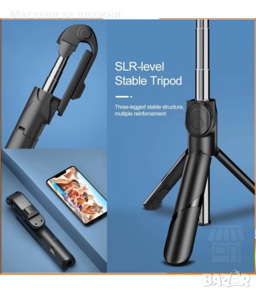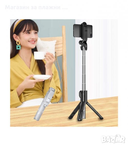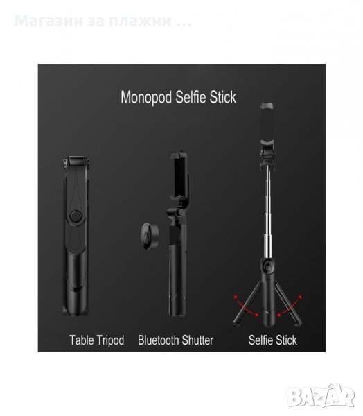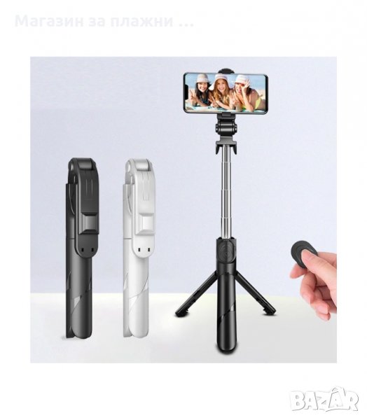 Многофукционален Алуминиев Bluetooth селфи стик с дистанционно+ регулируем статив монопод за iPhone и Android. Устройството може да извършва функциите на статив, като основата му се разтваря на 3 крачета, а в прибрано състояние може да се използва като автоматичен селфи стик.