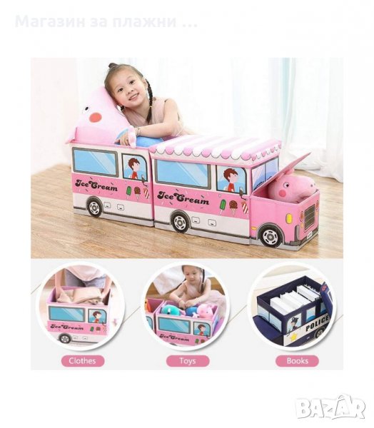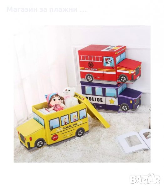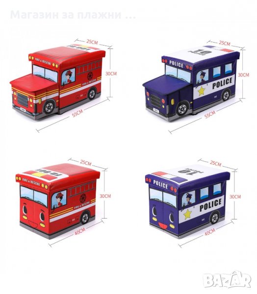Кош за играчки - сгъваема кутия табуретка с форма на полицейска кола, пожарна, автобус и камион за сладолед