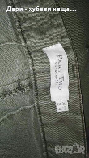 Силно еластичен, плътен памучен панталон, в отлично състояние.Цветът е зелен „милитъри”.Моделът е по тялото, но манекена е с по-малък размер.