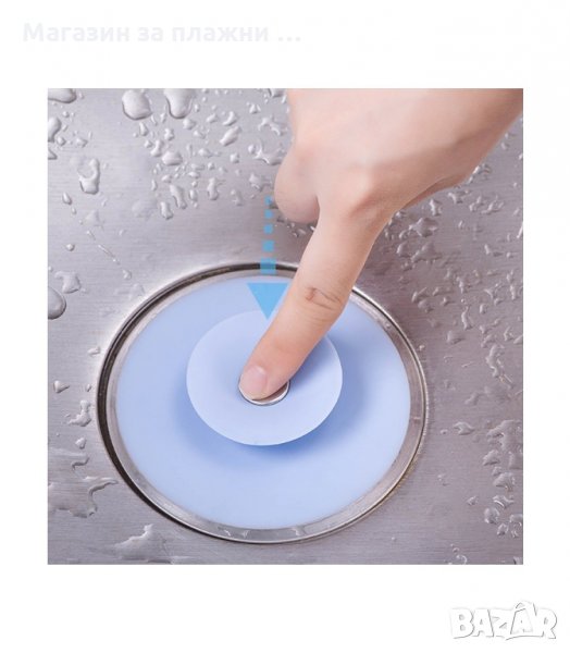 Дренажната силиконова тапа има 2 функции. Да спира изтичането на вода, а също така ви позволява да улавяте косми, които биха могли да запушат тръбата. Просто натиснете централно разположения метален бутон, за да повдигнете горната част и да оставите водата да изтече.