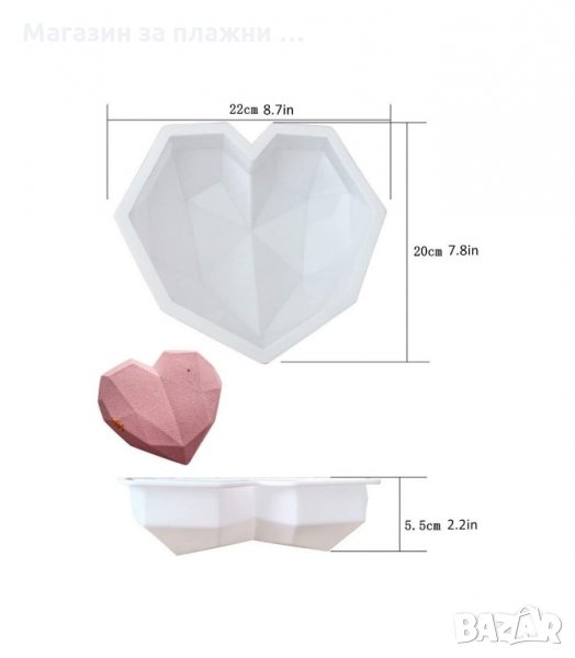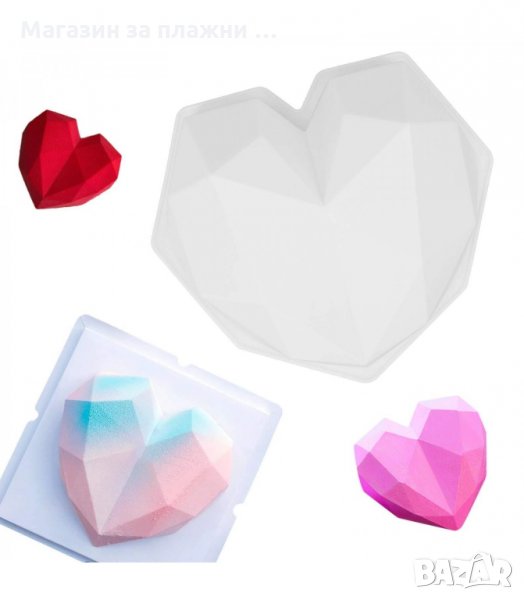 Ефектна силиконова форма за 3D Диамантено сърце за торта