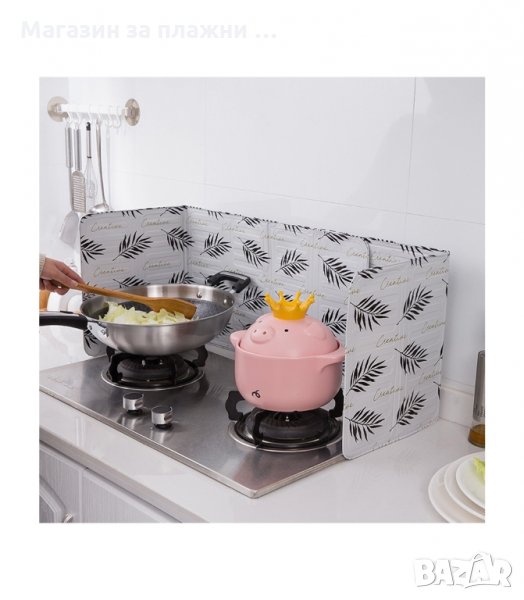 Защитава печката от пръскане, когато готвите и я държи чиста. Практично решение за поддържане чистотата на готварската печка. Протекторът е изработен от лек алуминий, който издържа на високи температури. Представлява един лист с размери 84 х 33 см, сгънат на 3 прегради. Фолиото е чудесно приложимо и когато сте на къмпинг или навън – защитава газовия котлон от вятъра и не позволява пламъка да излиза встрани.