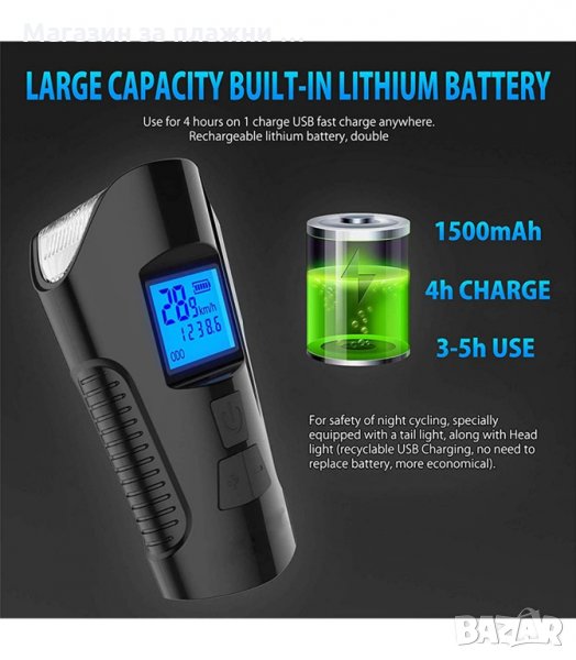 Фар за велосипед с LCD скоростомер и USB зареждане
