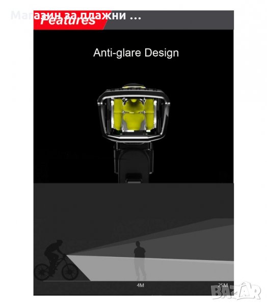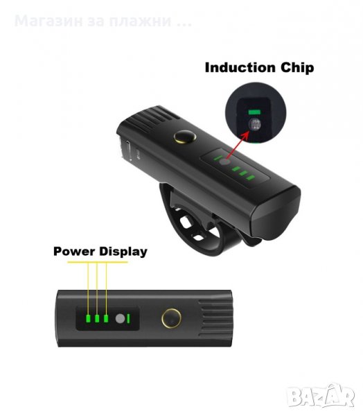 Акумулаторен LED Фенер за колело със сирена и сензор за светлина и различни режими на светене