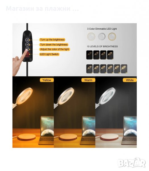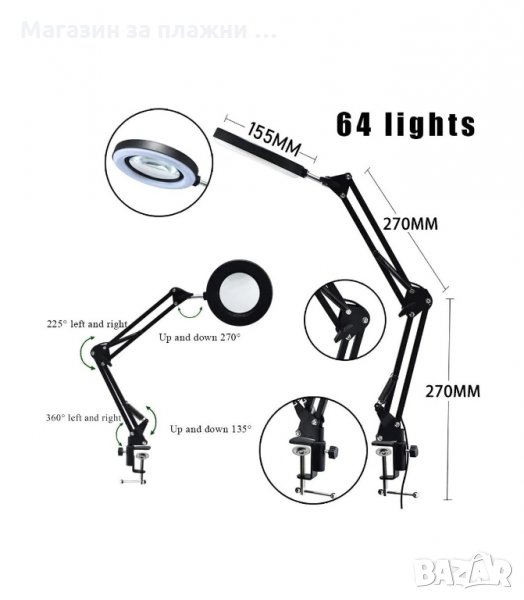 ЛАМПА С ЛУПА 5 ДИОПТЕРА И СТЯГА ЗА ЗАКРЕПВАНЕ КЪМ БЮРО ИЛИ РАБОТЕН ПЛОТ