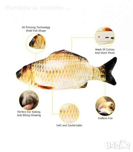 Има двигател за разпознаване на движение отвътре – мърда се точно като истинска риба при докосване. Спира се, когато остане сама!