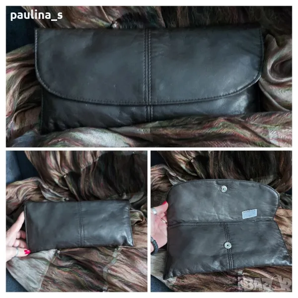 2️⃣. Колаж / Винтидж / Естествена кожа / Чанта за повод, модел Клъч. Цената е крайна 29,99лв / 15 евро. Цветът е Тъмен шоколад. Кожата е мека, агнешки бокс, без дефекти, с леки следи от употреба, с оглед възрастта на артикула 1972г от Либия, съобразена цена! Размери - 28см / 14см.