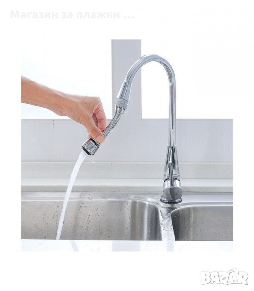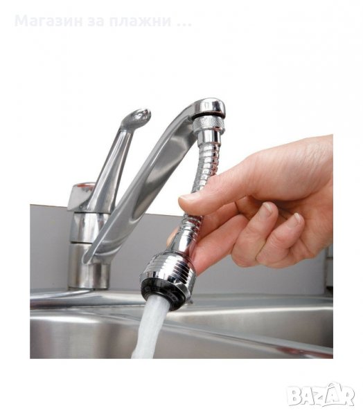 Удължител за чешма с гъвкаво тяло и 2 функции на водната струя. С универсален накрайник, пасва на почти всички кранчета. Може да се върти на 360 градуса и е изключително удобен за миене на съдове, плодове и зеленчуци и др.