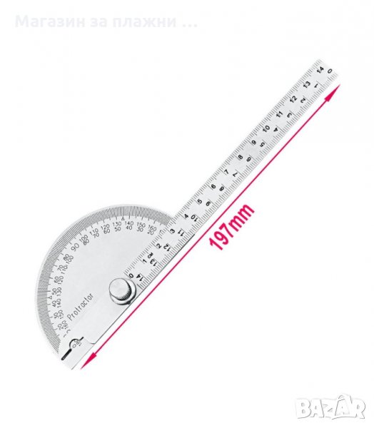 Транспортир, изработен от високовъглеродна стомана с обхват на измерване 180 °.