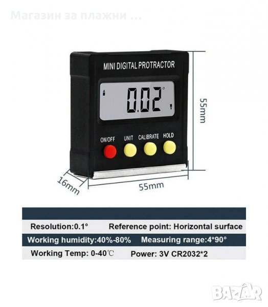 Електронен ъгломер и нивелир с магнитна основа - 1 бр.