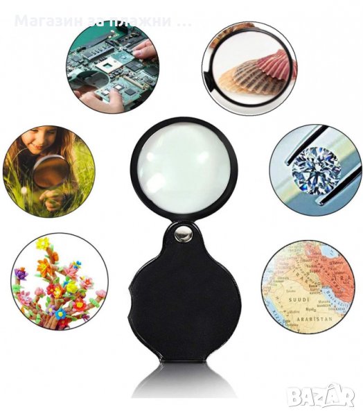 ДЖОБНА РЪЧНА ЛУПА С УВЕЛИЧЕНИЕ 8Х В КОЖЕНО КАЛЪФЧЕ - код 3099