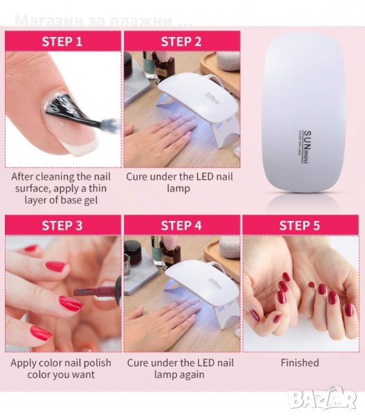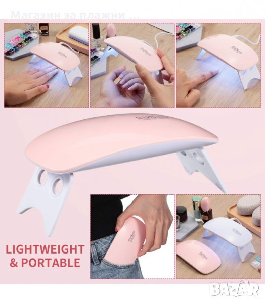 Мини лампа за гел лак Sun Mini! Съвместима с всички видове лак. Снабдена с най-новата светлинна технология – двойна оптична дължина на вълната (365nm + 405nm), прави работата с всички UV гел лак за нокти и LED гел лак за нокти безпроблемна. Няма нужда да се притеснявате за смяна на крушките.