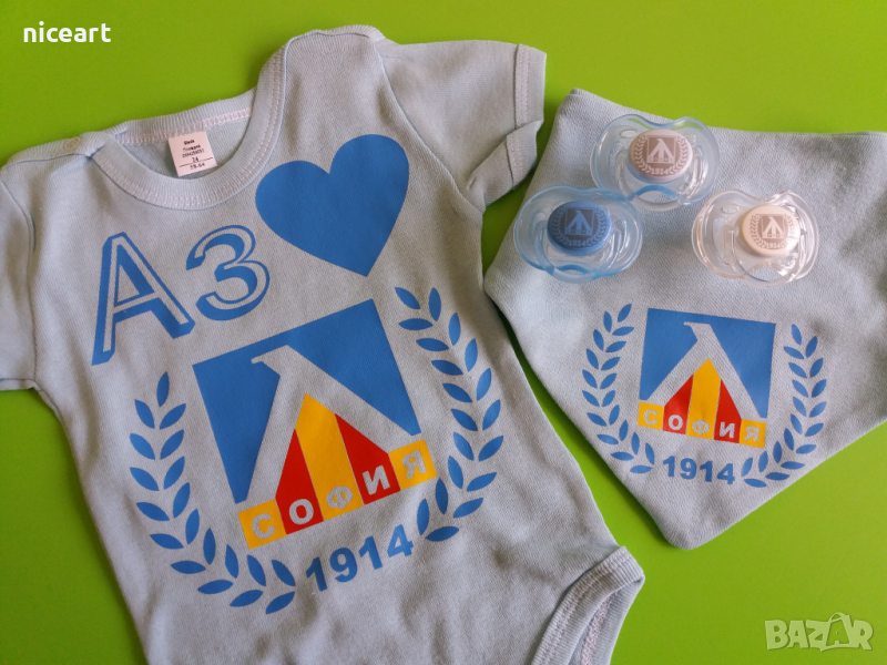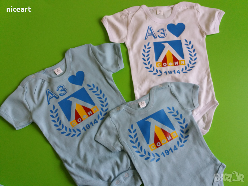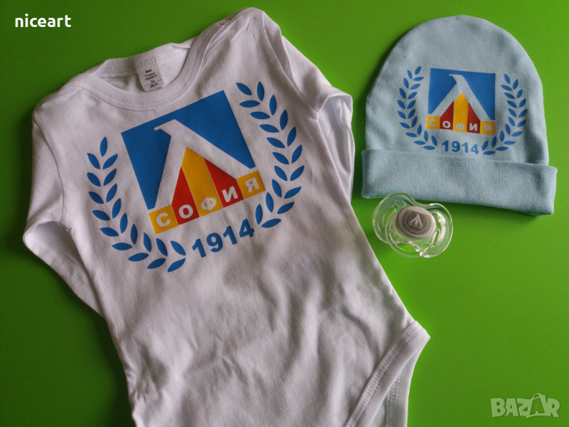 При нас може да поръчате бодита с емблема Левски София,материя на бодитата 100% памук.Изработваме и тениски,биберони,купичка с лъжичка,шишета за мляко и вода,термос ,лъжички за хранене и други артикули с емблема