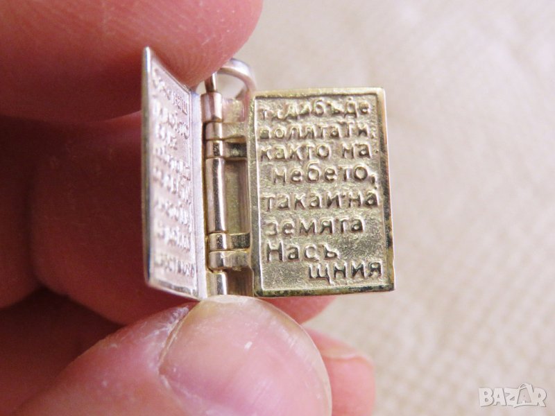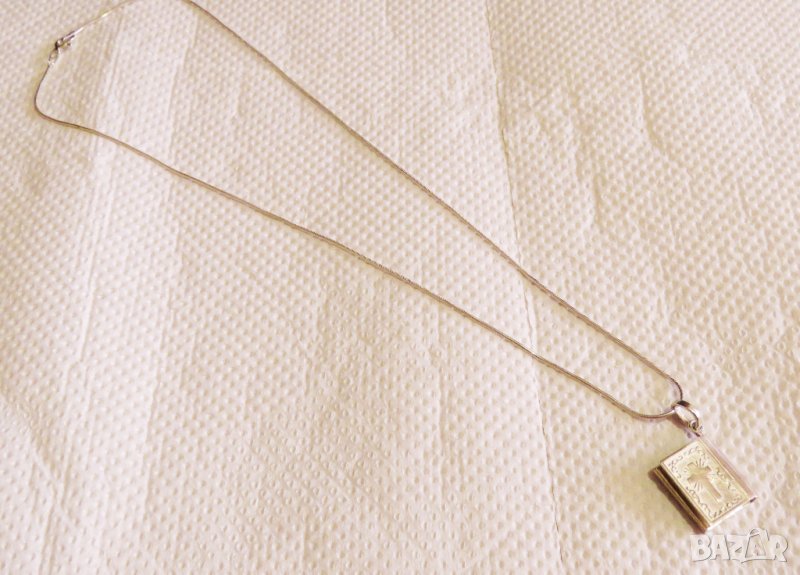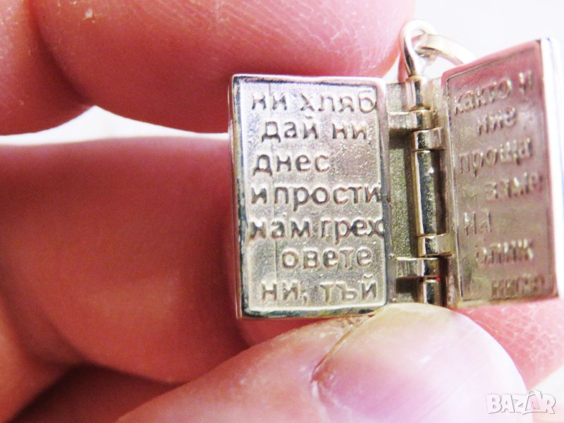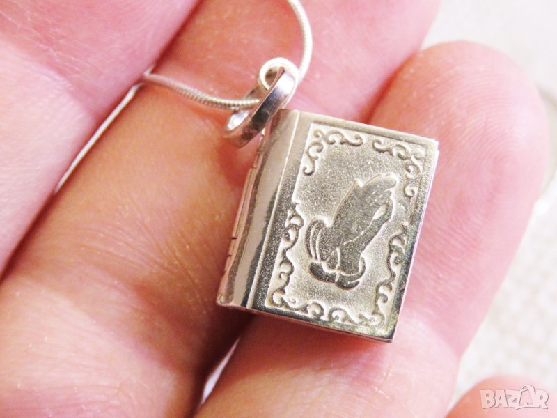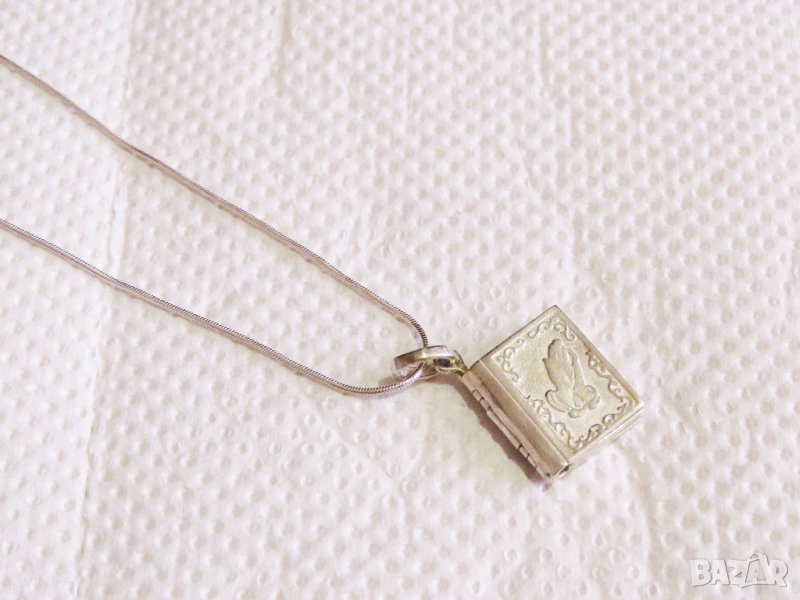 Малка кована библия, сребърна библия с господнята молитва ,, Отче наш '' и сребърен синджир сребро