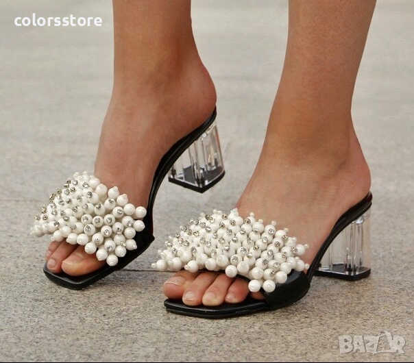Чехли на ток - черен лак с перли - KP60 , снимка 1 - Чехли - 34135874 1/1