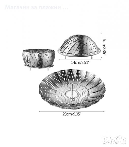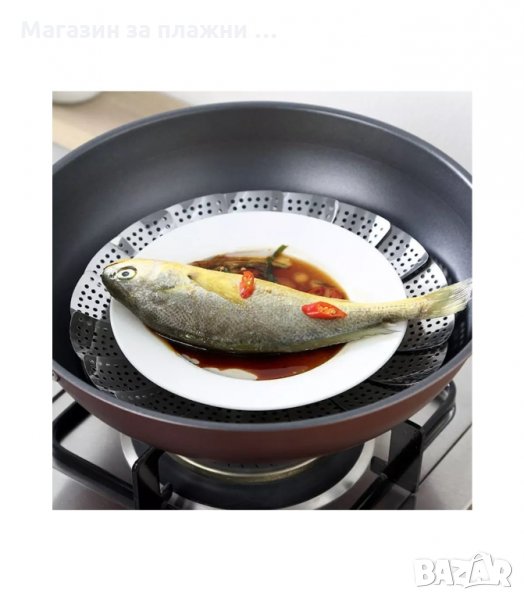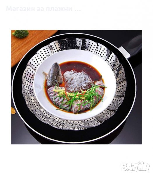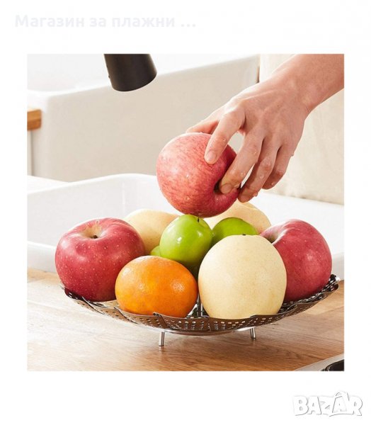 Решетъчен сгъваем съд - кошница с кръгла форма за готвене на пара