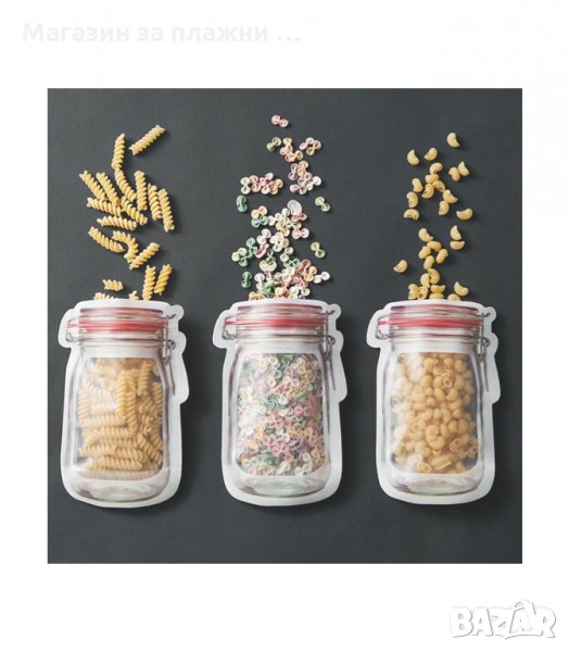Тези удобни торбички са предназначени за съхранение на различни хранителни продукти - бисквити, ядки, зърнени закуски и др. Те се затварят с плътен пластмасов цип, който не допуска въздух и влага в торбичката и така запазва храната свежа за по-дълго време.