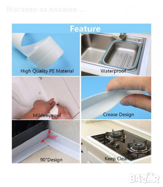 Лесна за употреба: Водоустойчива лента с гладка и красива повърхност, осигурява дълготрайно запечатване, като може да се използва не само в кухнята, но и като декоративна лента за дома.
