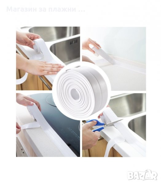 Уплътнителна лента за фуги. Водоустойчива самозалепваща лента за баня, мивка, вана и други - Размери - 3.8 см широка и 3.2 метра