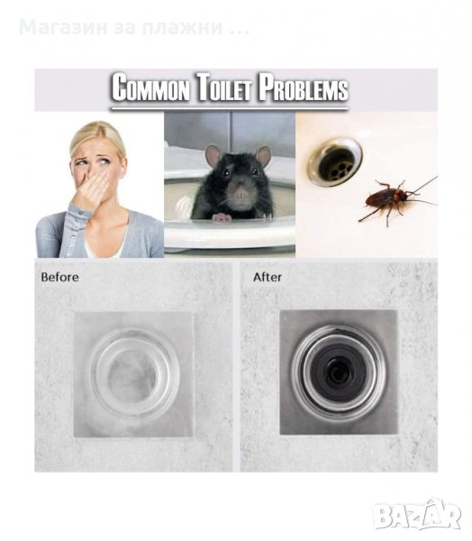 Поставя се директно в сифона на пода в банята. Ефективен начин да спрете лошите миризми в банята и да прекратите нашествието на насекоми от канализацията.