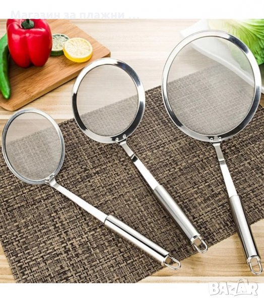 Метална цедка с дълга дръжка от неръждаема стомана