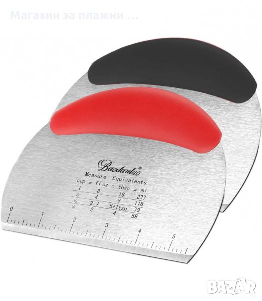 Освен това шпатулата е оразмерена, като от едната страна е оразмерена в сантиметри (до 14см), а от другата в инчове (до 5.5 инча), което ще ви помогне да измерите и изрежете точното количество тесто.