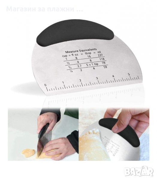 Удобен и практичен нож за тесто от неръждаема стомана, със здрава, нехлъзгаща се ръкохватка. Аксесоар, необходим за всяка кухня - с него лесно, бързо и точно режете тесто и тестени изделия. За по-голямао удобство, ножът е разграфен с мерни единици и сантиметри.