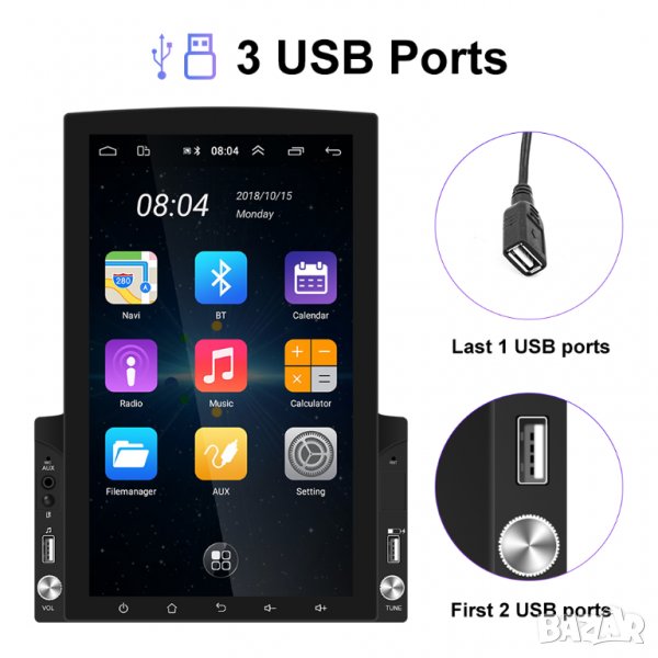 Wi-Fi интернет, новият Андроид, Bluetooth за разговори и музика, USB входове за флашка и зареждане на устройства, GPS навигация, теми за вид на меню, еквалайзер за настройка на звука, бърза реална RAM памет от ново поколение. ТОП дизайн!