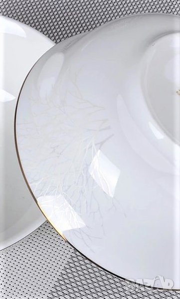 Изискан комплект чинии - 18 бр. с дискретен, платинен декор "Дървото на живота" и тънък, платинен кант.