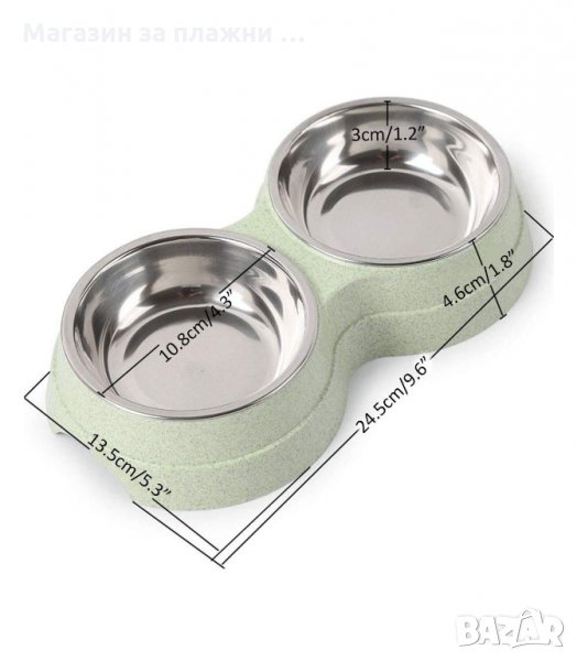 Размери на двойната купичка: 24.5 х 13.5 х 4.6 см.