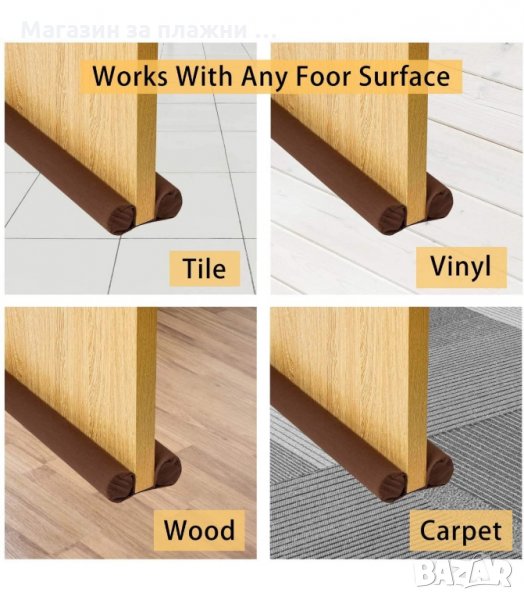 Повечето уплътнители за под врата са единични и нестабилни, а и е доста досадно и неприятно да го премествате всеки път, щом се наложи да отворите вратата. Този уплътнител за под врата е двустранен и пасва на всяка врата и под, независимо какви са те: теракот, паркет, ламинат, дърво или балатум. Двустранният уплътнител може да се регулира точно по размерите на вашата врата или прозорец: измервате, изрязвате и поставяте, за да сложите край на неприятното течение.