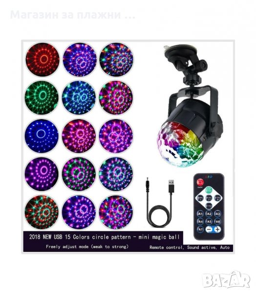 Тази LED парти лампа има 7 цветно осветление и 3 режим с дистанционно.