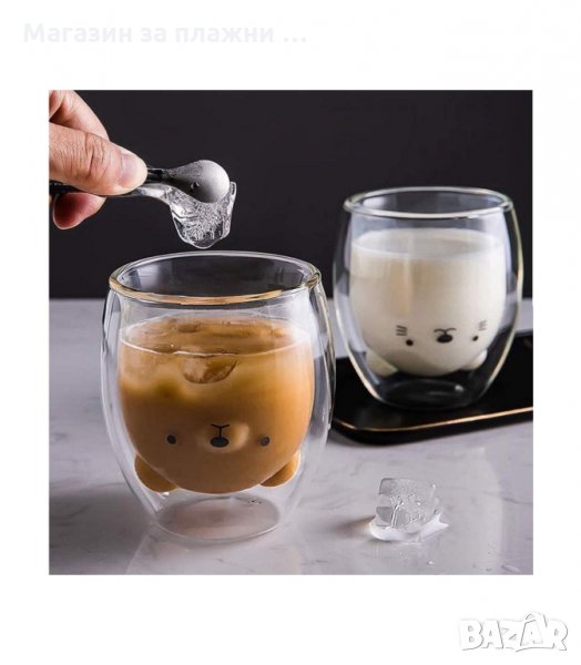 Двустенна стъклена чаша за кафе "Мече"